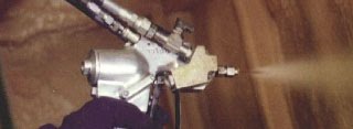 Voyons une vidéo de la projection du coating sur une projection de polyuréthanne.